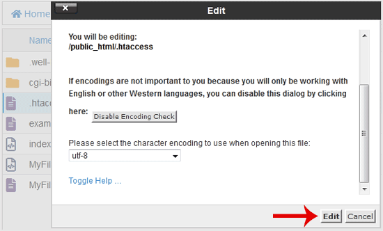 no menu de contexto. 6. Em uma nova janela, clique em Editar . 7. Faça alterações em seu arquivo dot htaccess e clique em Salvar alterações .